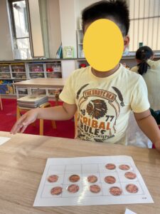 - 10円玉を一つずつ指差し、1対1対応 を意識して数える
