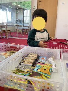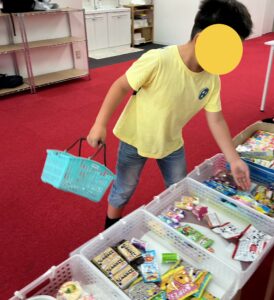 お買い物コーナーには、お菓子がずらりと並びます。 まるで本当のお店に来たような気分でスタート。