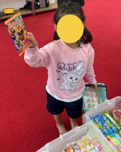 「これください」「〇〇円です」「どうぞ」 やり取りの中で、子どもたちは“買う”という体験を楽しみながら、社会性やコミュニケーション力も育んでいます。