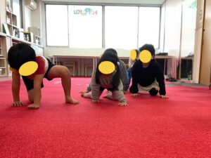 未就学の子たちにはハイハイで進むバージョンもやってみました♪