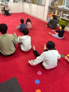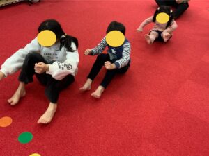 まずはみんなでお尻歩きの練習から(^^)