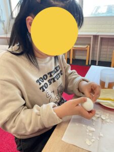 ゆで卵をむく経験、初めての子がほとんどでした。