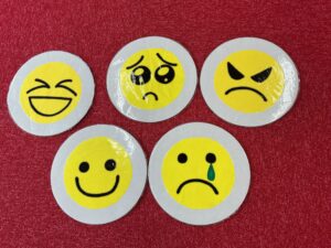 「この顔はどんな気持ちの時?」など問いかけ、感情を読み取る練習にもなります。