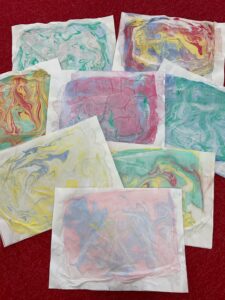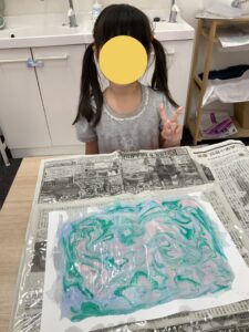 毎年恒例のマーブリングですが、今年も子どもたちの個性が表れる素敵な作品がたくさん生まれました。