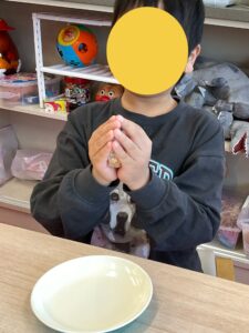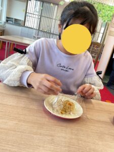 どうやったら三角になるのか考えながら握っている子や、まんまるのコロコロおにぎりにしている子、みんなたくさんおかわりをして食べてくれました😋