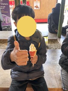 足湯で温まったあとは、お楽しみのソフトクリーム!